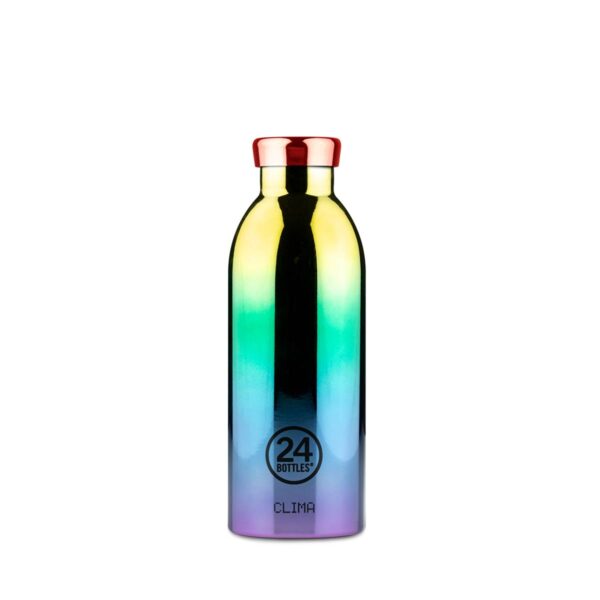 Die 24Bottles CLIMA Flasche SKYBEAU ist eine stilvolle Thermoflasche mit echtem Wow-Effekt. Das glatte Chrom-Finish erzeugt einen spiegelähnlichen Effekt, der das Licht reflektiert und der Flasche eine wunderschöne, schillernde Note verleiht. Die fließenden Regenbogentöne wirken modern, cool und außergewöhnlich.